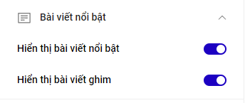 Sau khi thiết lập bài viết nổi bật, bài viết ghim ở mục Bài viết, bạn sẽ bật/ tắt để chọn lựa hiển thị hay không hiển thị trên trang xuát bản Blog&#x20;