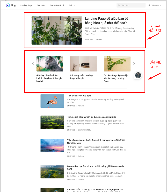 Thứ tự hiển thị giao diện   Bài viết nổi bật -> Bài viết Ghim-> Danh sách các bài viết mới nhất&#x20;