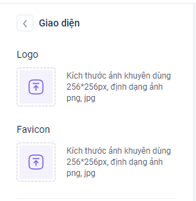 Thiết lập trang sẽ sử dụng cho việc thiết lập Logo, Favicon.