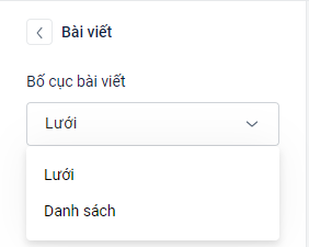 Với giao diện Hiện tại, bạn có thêm phần thiết lập bài viết dạng Lưới hay dạng Danh sách