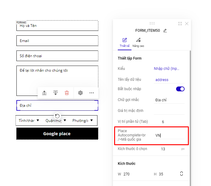 1. Phần địa chỉ gợi ý sẽ chỉ được điền vào trường Địa chỉ của form, không tự động điền vào  trường dữ liệu tỉnh/thành, quận/huyện,phường/xã của form&#x20;