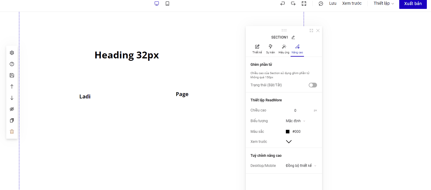 * Trường hợp bạn muốn các giá trị là nối tiếp nhau, có dấu cách thì trong công thức bạn sử dụng thêm kí tự :  " ...." ( dấu ... bạn có thể thay thế tùy ý ) , ví dụ bạn muốn giá trị của text sau khi ghép hiển thị là Ladi\_Page thì công thức bạn thao tác&#x20;