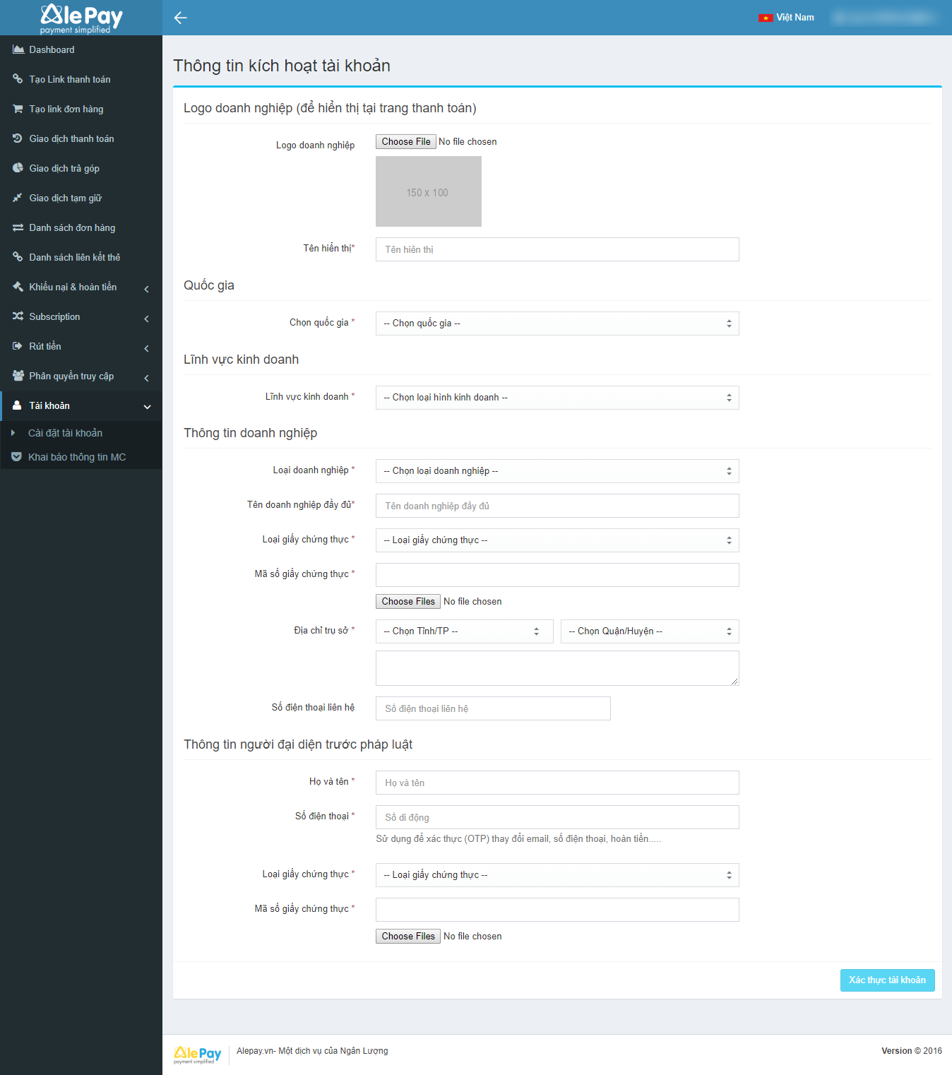 Đăng ký tài khoản AlePay