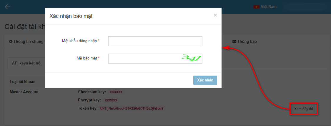 Key tích hợp->Xem đầy đủ.