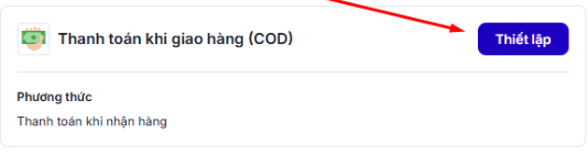 * **Bước 2:** Tại mục COD, chọn **Thiết lập**