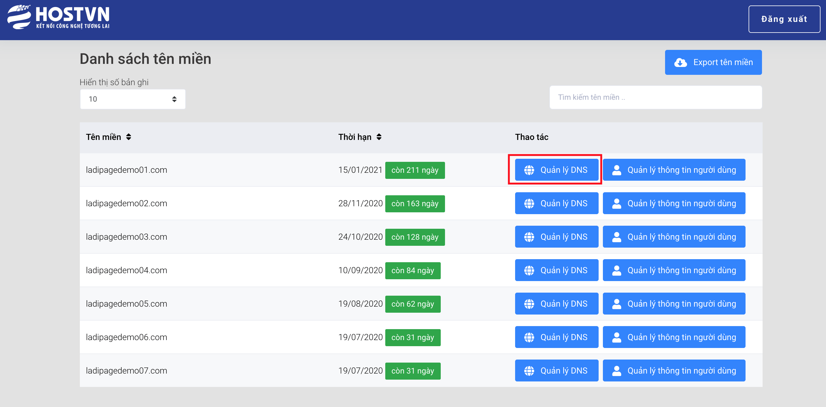 Truy cập trang quản trị tên miền của HOSTVN tại <https://dns.hostvn.net/>.
