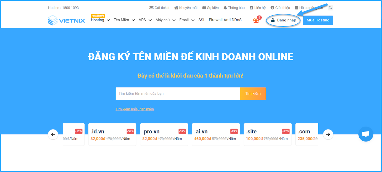 **Bước 1:** Sử dụng tài khoản khách hàng của bạn tại Vietnix để đăng nhập.