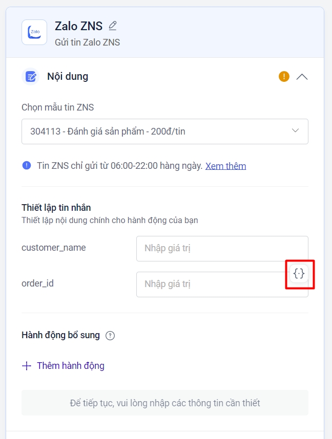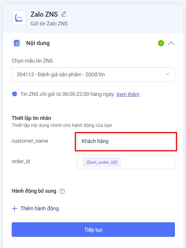 Hướng dẫn thiết lập gửi tin nhắn Zalo ZNS