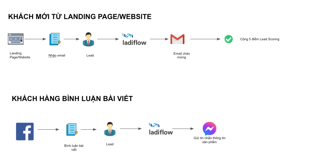 Trigger là sự kiện sẽ kích hoạt Flow. Flow trên LadiFlow cho phép nhiều Trigger thực hiện cùng một chuỗi hành động. Các sự kiện kích hoạt có thể từ chính trên Automation hoặc các nền tảng khác: Facebook, Zalo, LadiChat, Ecommerce ....