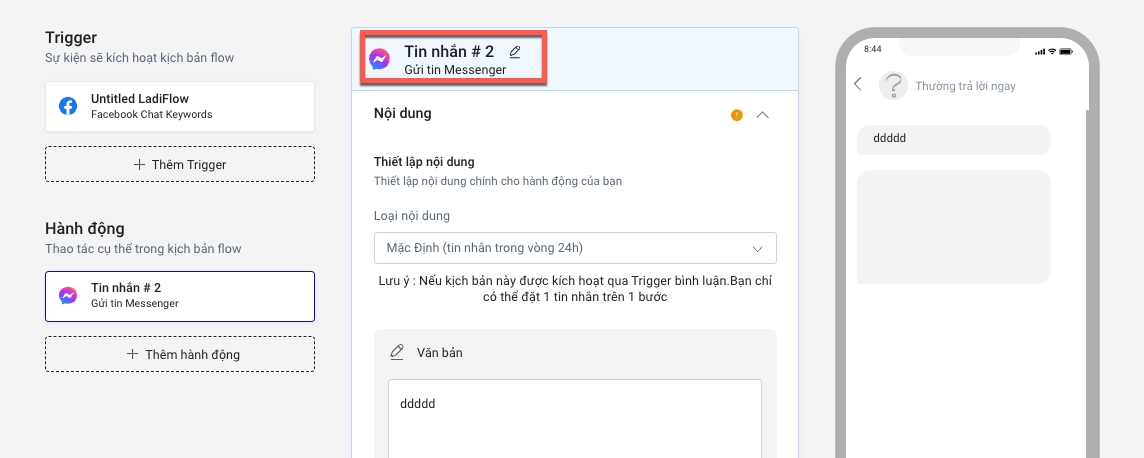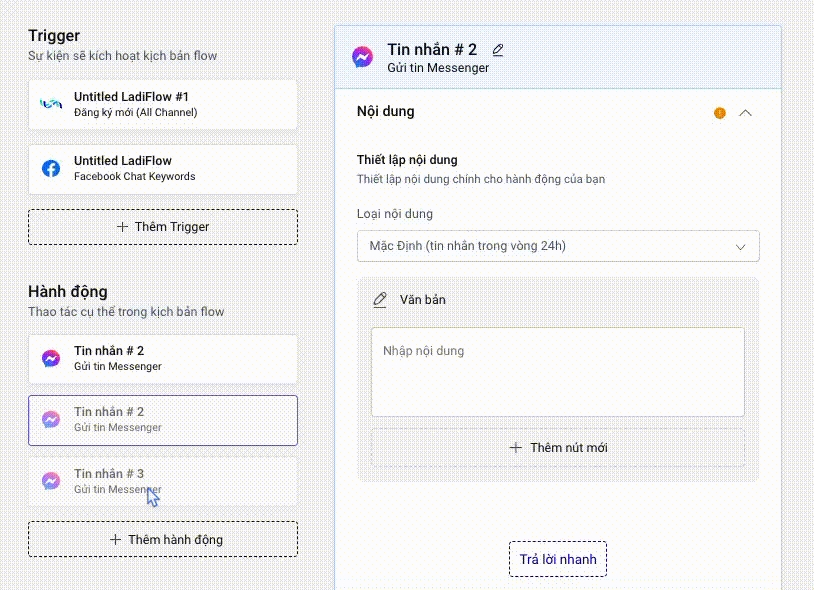 Lưu ý: Số lượng hành động tối đa trong Flow là 50.
