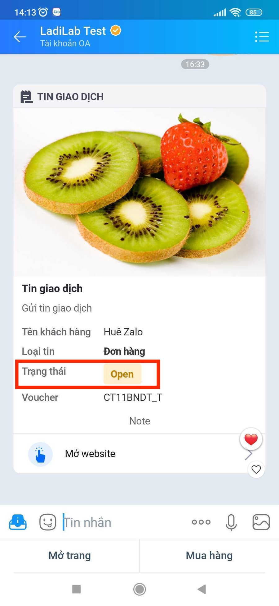Chỉ gửi được tin giao dịch nếu khách hàng có tương tác với OA trong vòng 1 năm.
