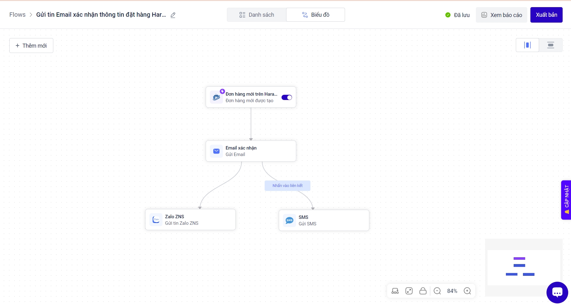 - Chọn Xuất bản để xuất bản Flow. Bạn có thể chọn danh sách trigger muốn kích hoạt ngay sau khi flow xuất bản. Flow chưa xuất bản sẽ ở trạng thái Flow nháp.