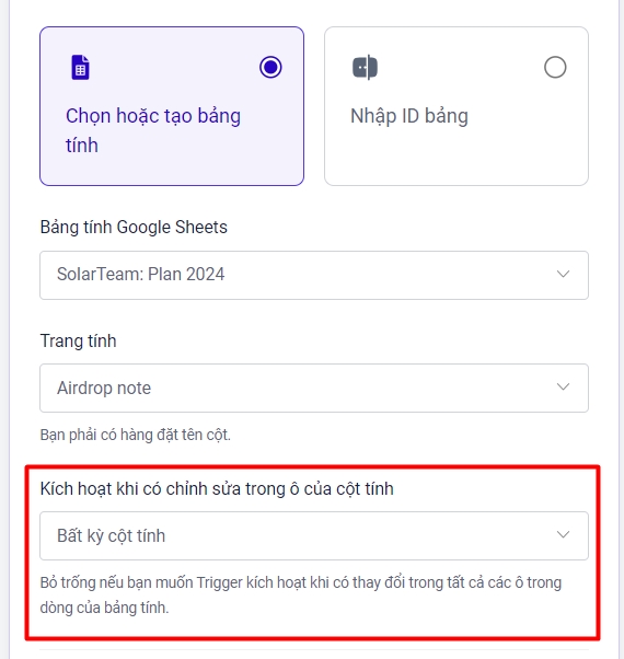 Các lưu ý khi sử dụng Trigger Hàng tính được tạo mới hoặc chỉnh sửa (Tự động) của Google Sheet
