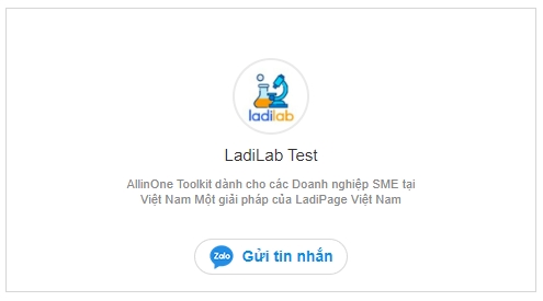 Widget: khi có ai đó click vào button có mã nhúng của LadiFlow, giao diện sẽ hiển thị thêm thông tin tài khoản zalo OA của bạn. Website của bạn phải có mã nhúng của LadiFlow thì trigger mới hoạt động. Dưới đây là ví dụ:
