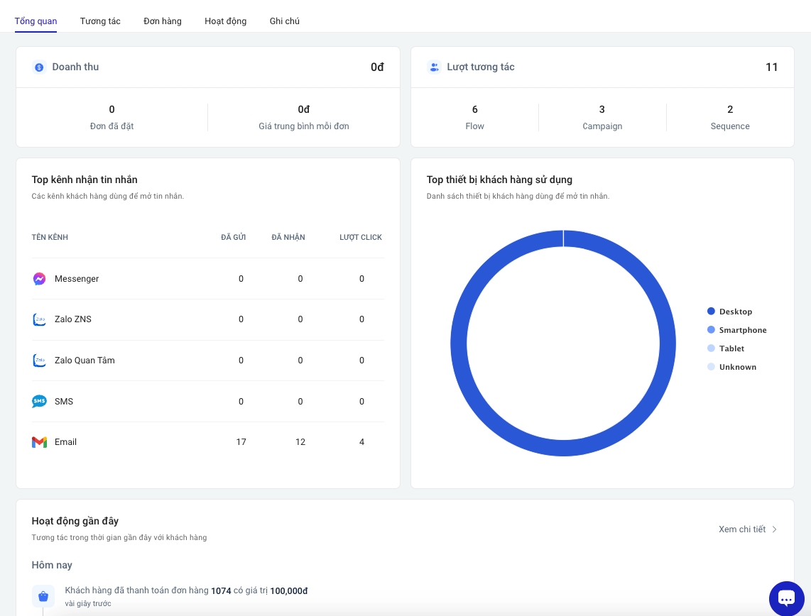 - Hoạt động gần đây: Các hoạt động của khách hàng trong vòng 3 ngày.