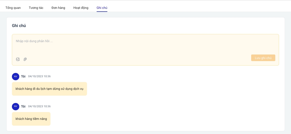 Bạn có thể xem các ghi chú bạn đã thêm cho khách hàng đó theo thời gian.