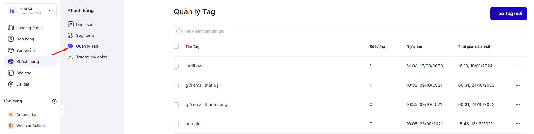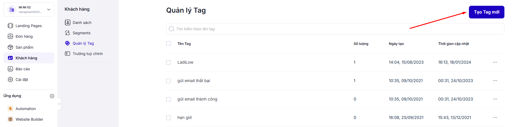 **Tag (thẻ)** là các nhãn được tạo ra để giúp bạn dễ dàng sắp xếp và lọc nhanh các khách hàng trong ứng dụng Automation
