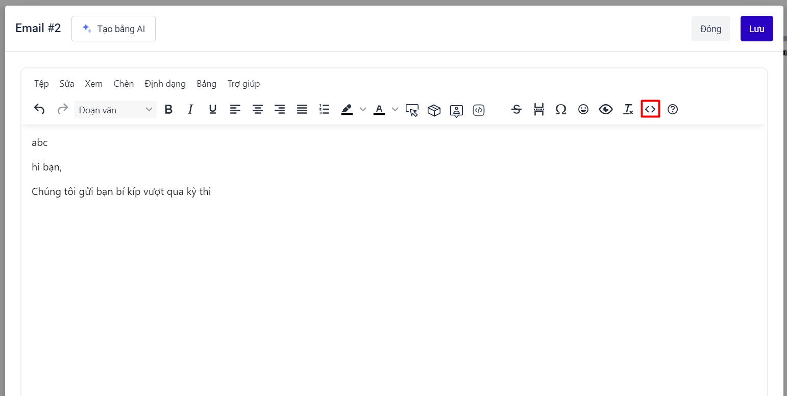 - Bạn chọn biểu tượng Mã nguồn trên thanh công cụ
