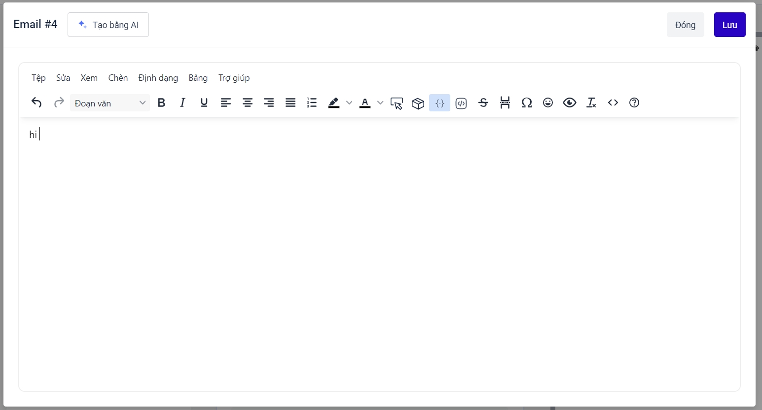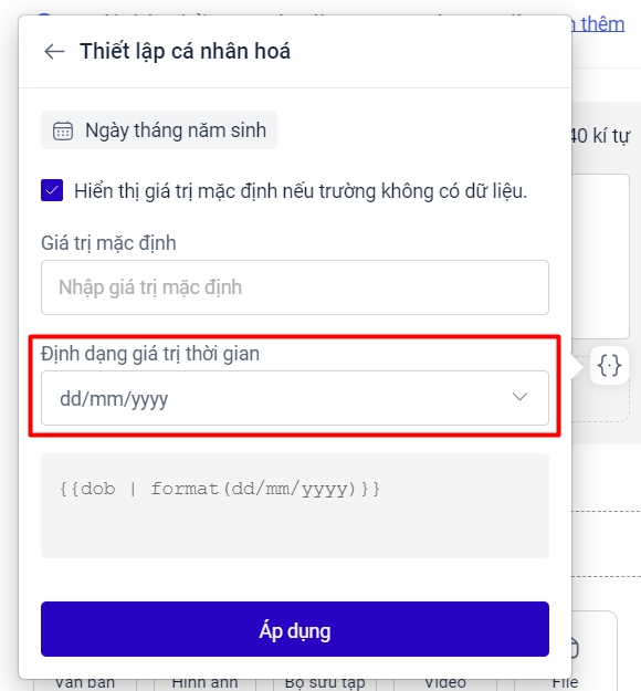 Ngoài ra, tại các khu vực không hiển thị tính năng Cá nhân hóa, bạn có thể chủ động thêm cá nhân hóa bằng cách nhập theo format {{tên trường tùy chỉnh}}