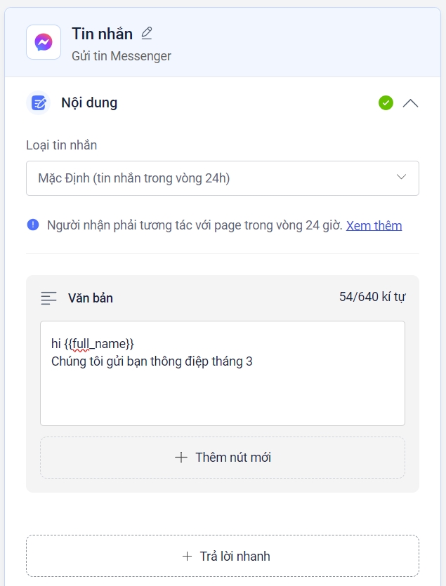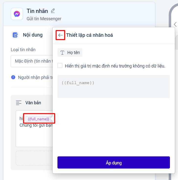 Để thiết lập tin nhắn cá nhân hóa, bạn làm như sau: