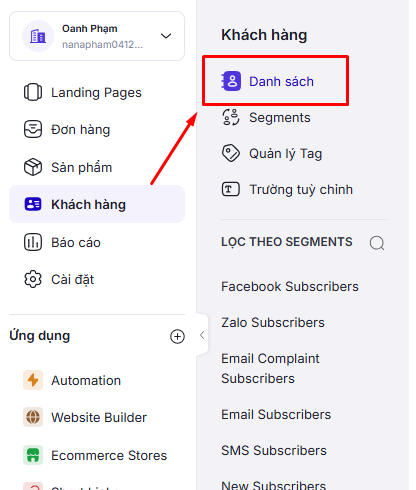 1. **Chọn danh sách khách hàng, sau đó chọn Khách hàng**
