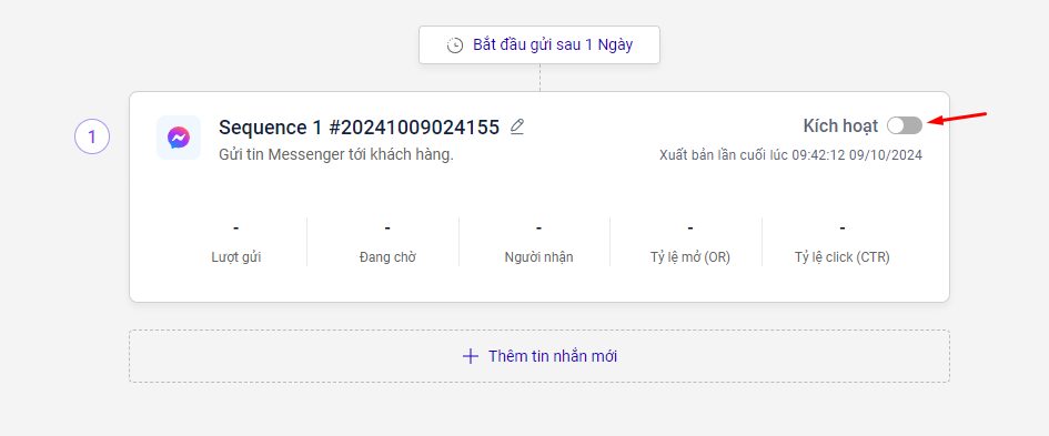 &#x20;Tin nhắn 1: gửi ngay sau 1 giờ, đã kích hoạt.