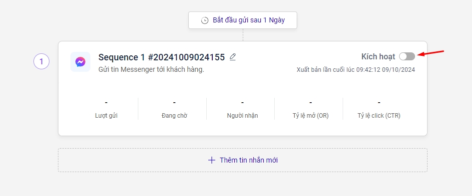 Sequence phải được hoàn thiện trước khi đăng ký theo dõi kịch bản. Nếu không bạn phải đăng ký theo dõi kịch bản lại cho khách hàng đó.