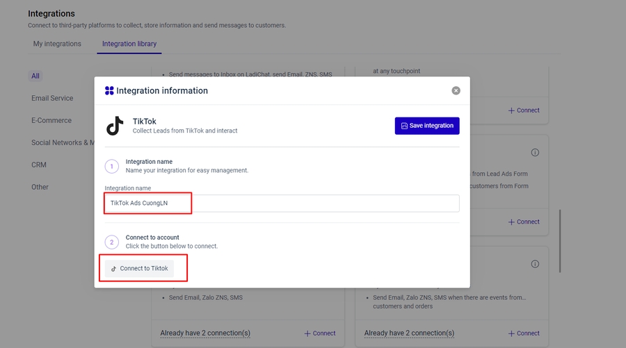 #Part 2. Create TikTok integration
