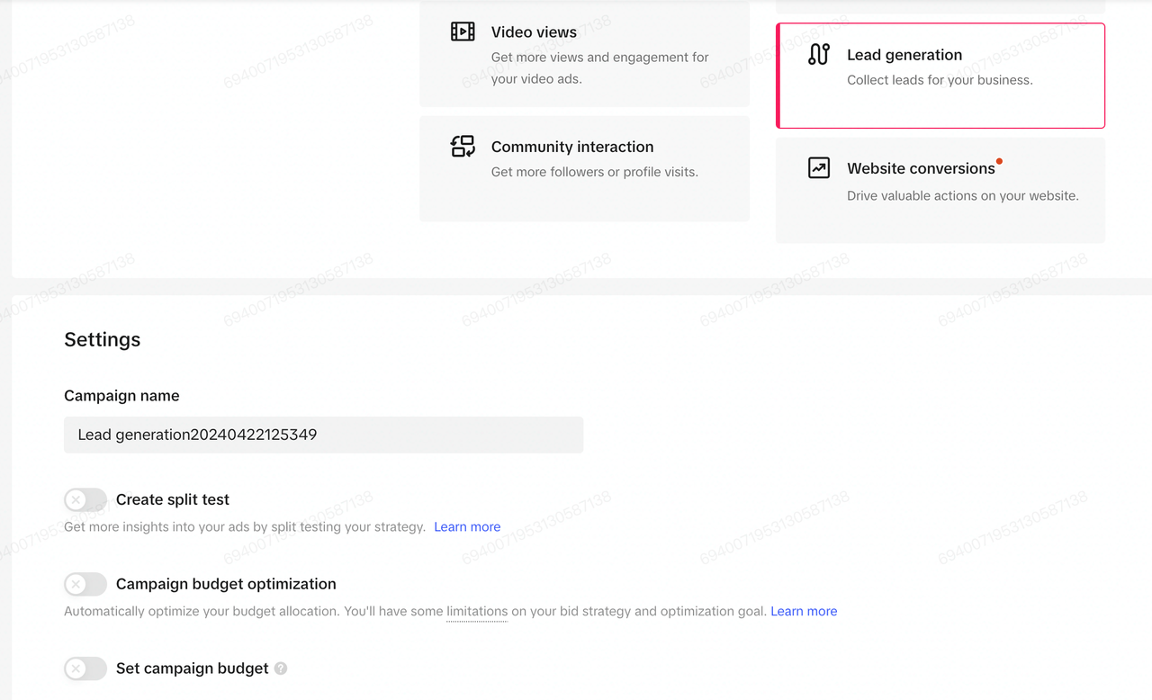 Choose "Lead generation" as your campaign objective