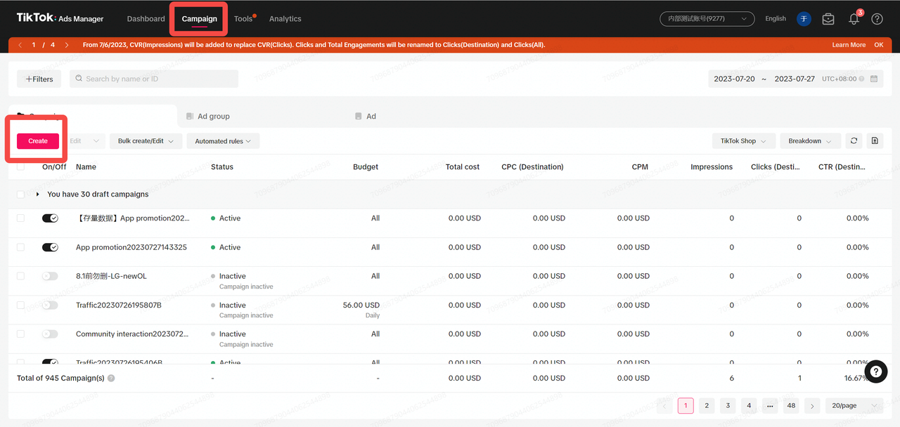 Log on to TikTok Ads Manager, go to campaign and click on "Create"