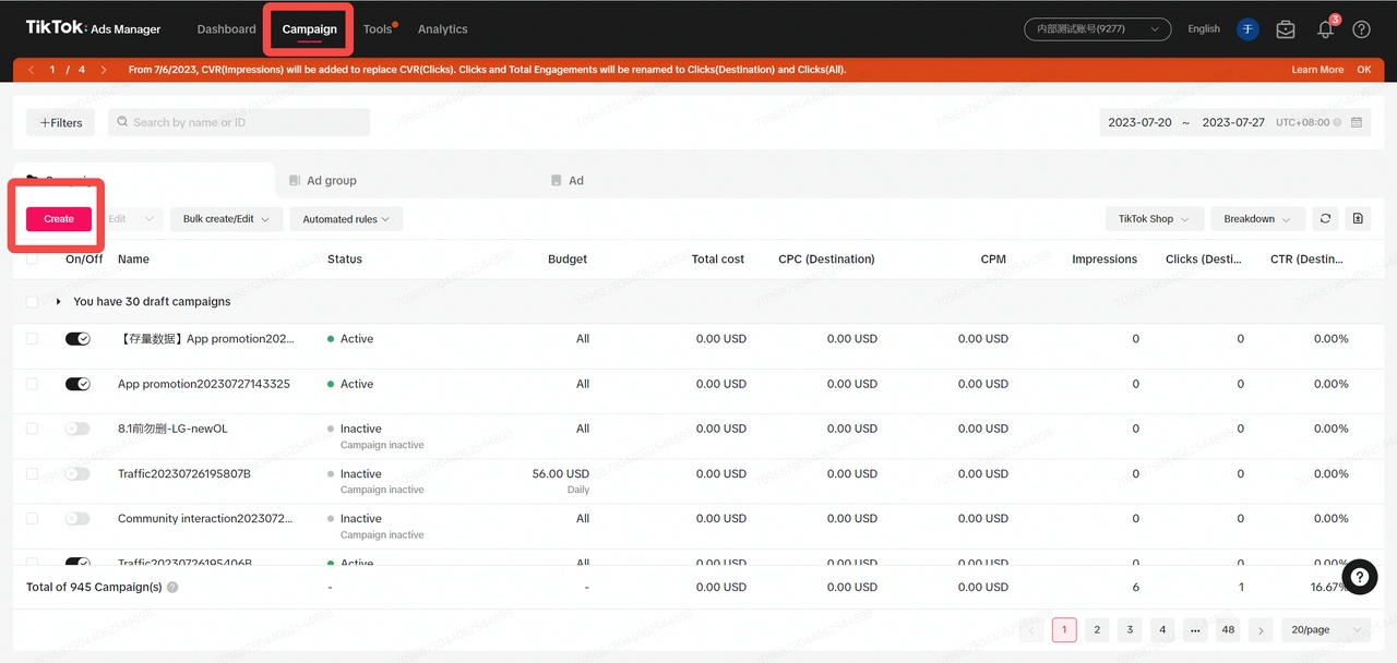 - Log on to TikTok Ads Manager, go to campaign and click on "Create"