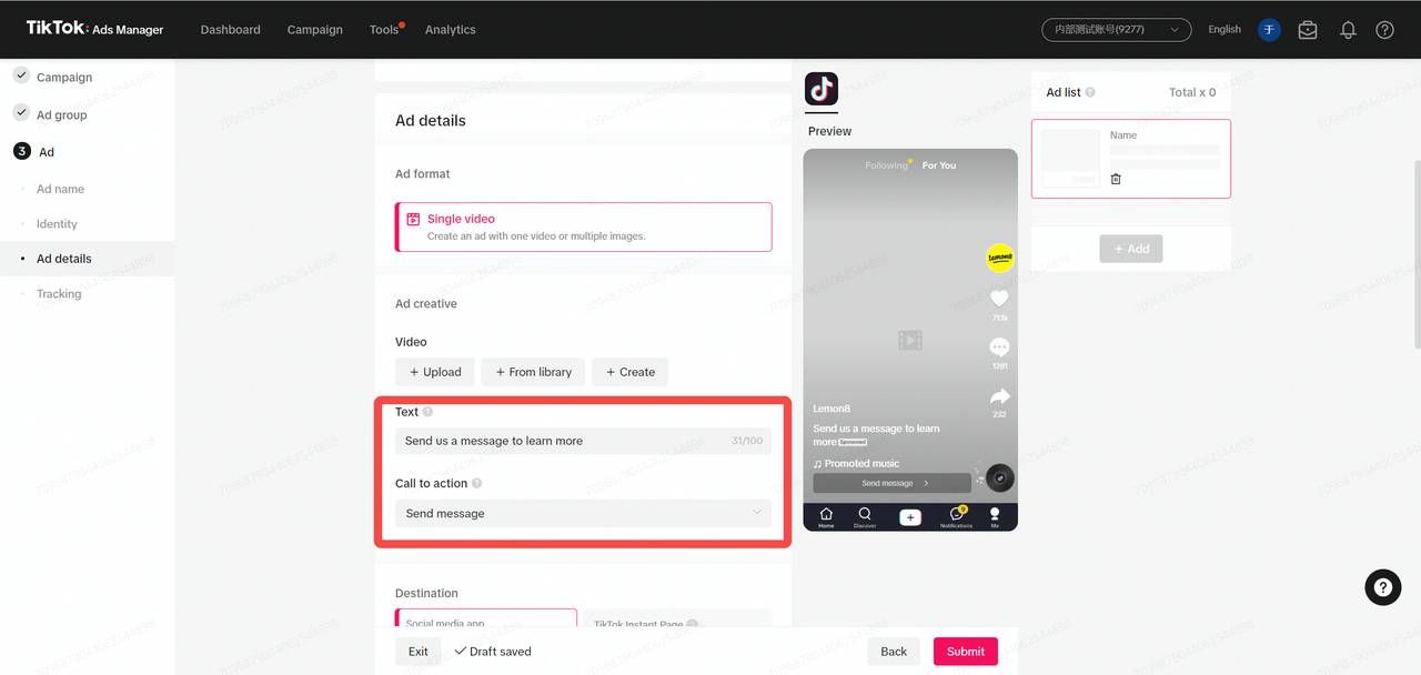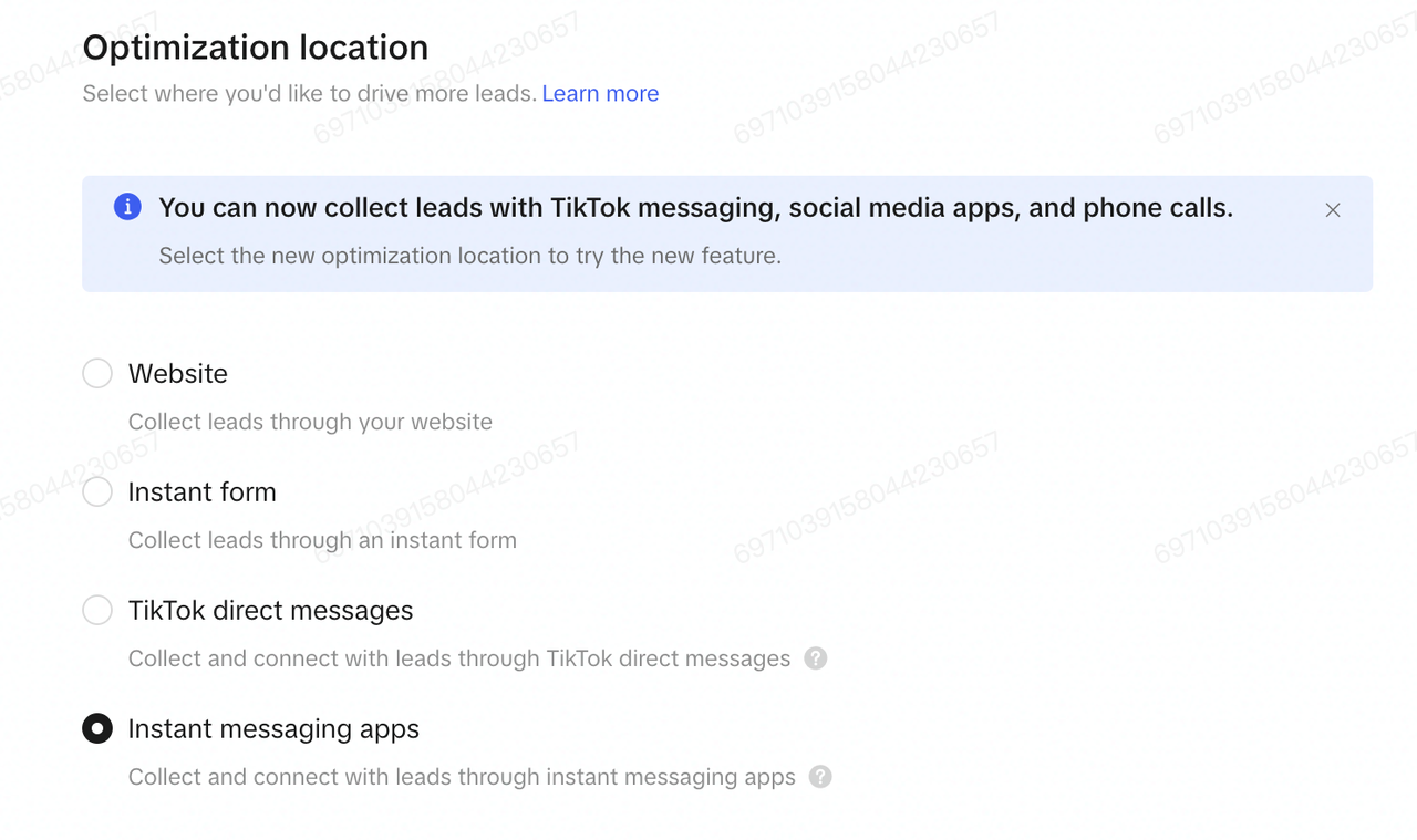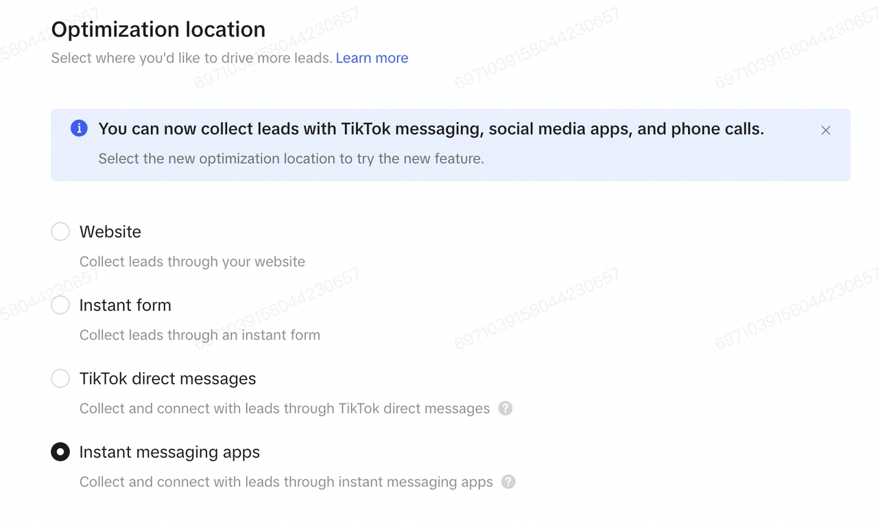 TikTok Messaging Ads is currently in Open Beta testing. Please reach out to your representative to get allow listed first before creating the campaigns
