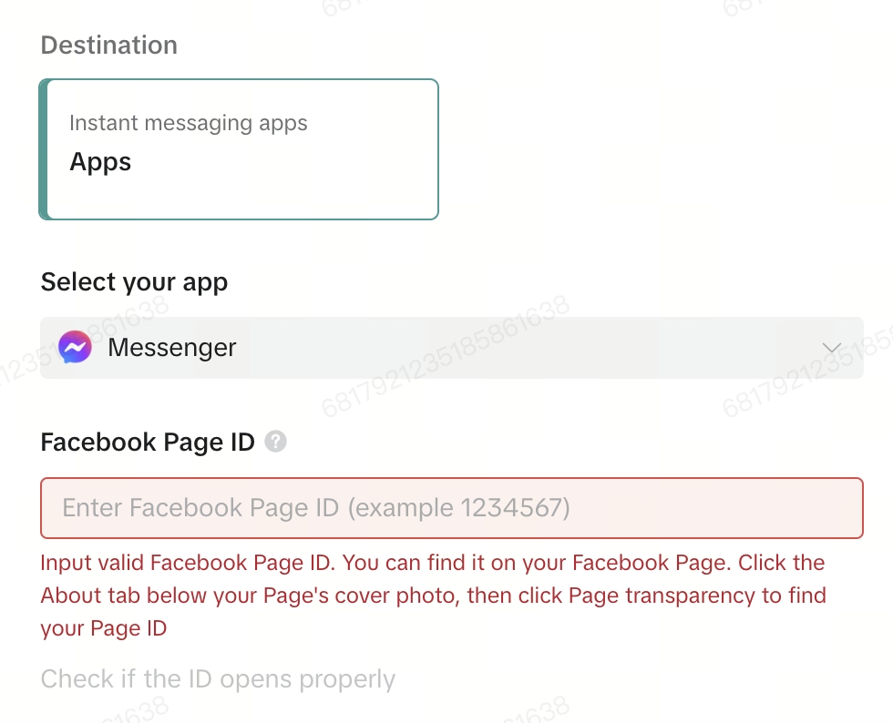 - If it's successful, you will enter the FB Messenger chat (for FB) with "Get started" button or for WA. In the ad preview, you'll see that the default message is a tracking code. However, in the actual ad, this message will be shown: "TikTok ID: __. Hello! I came across your ad on TikTok and would like to find out more."