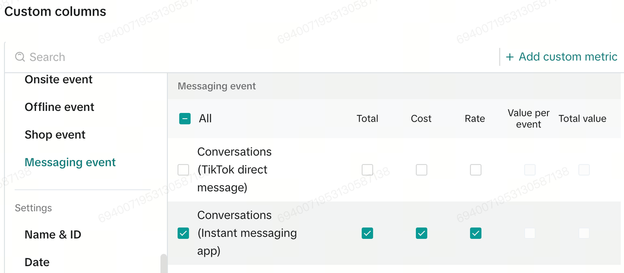 You can also go to "Custom columns" and choose Messaging Event