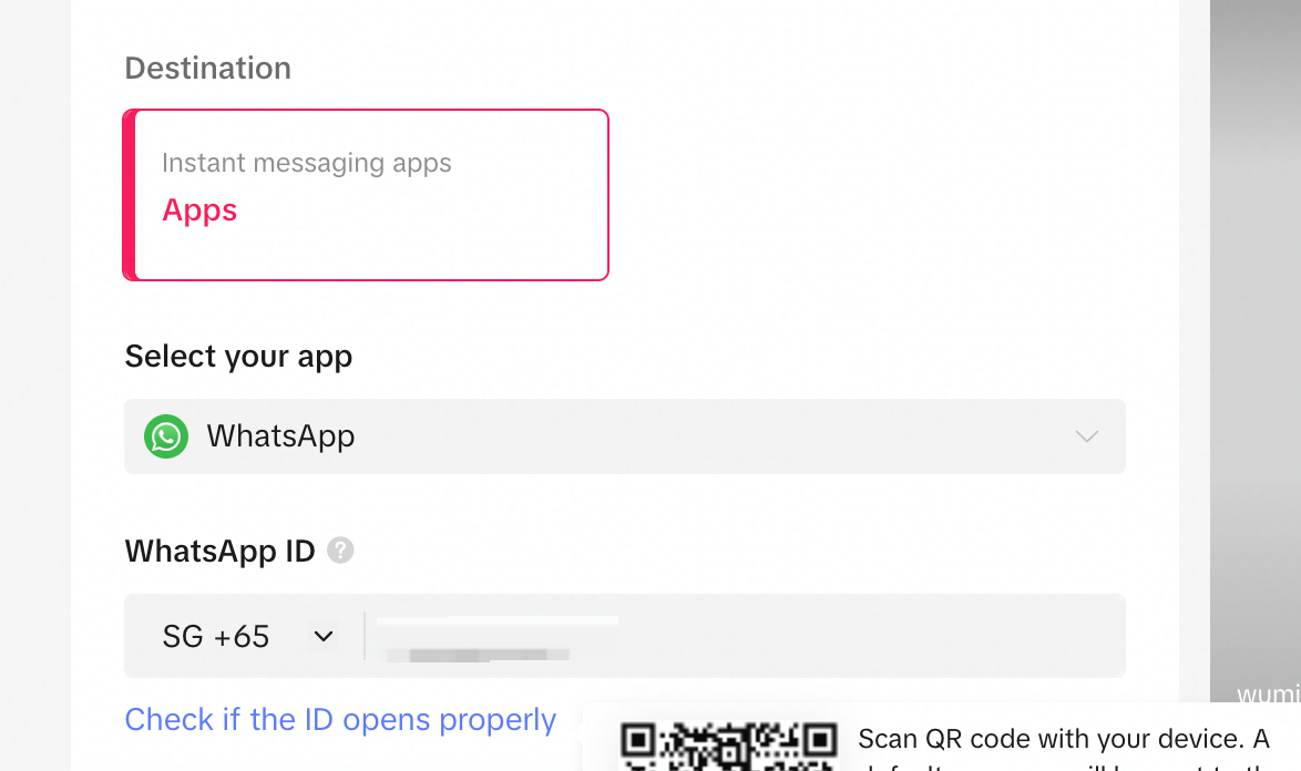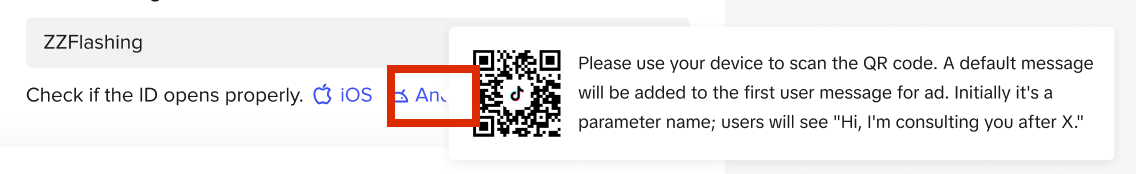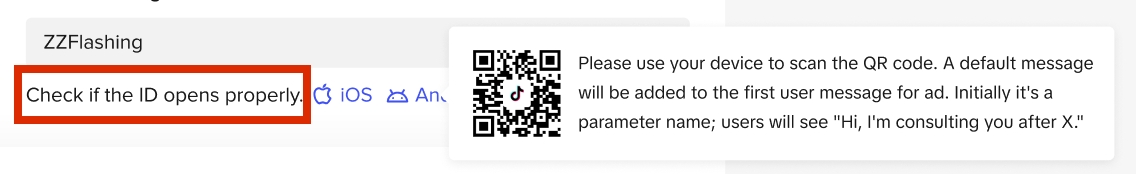 You can check to see whether the settings are all good by clicking "Check if the ID opens properly" and scanning QR code to preview, depending on your phone's OS (iOS or Android OS - only for FB Messenger). Please note the QR code only works for the specific OS. Clients need to have Messenger installed on their phone where they'll be taken directly to a chat