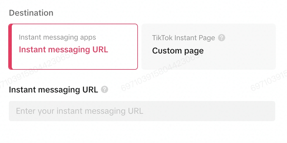 - Choose Instant messaging URL as your destination. You can select the instant messaging apps or use or a customised URL