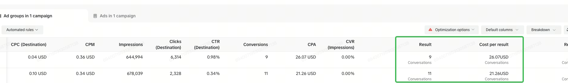 You will be able to see "Cost per results (conversations)" in the reporting section to monitor the campaign performance