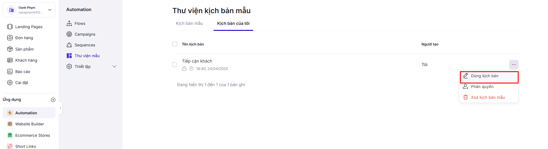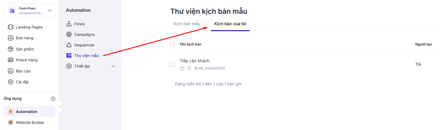 Chọn **Thư viện mẫu** trên thanh menu, sau đó chọn **Kịch bản của tôi.**