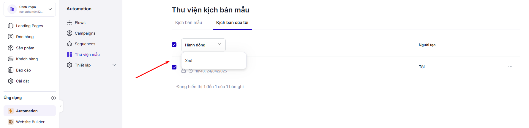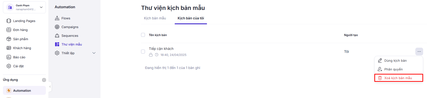 **Chọn kịch bản muốn xoá**, chọn **Xoá**
