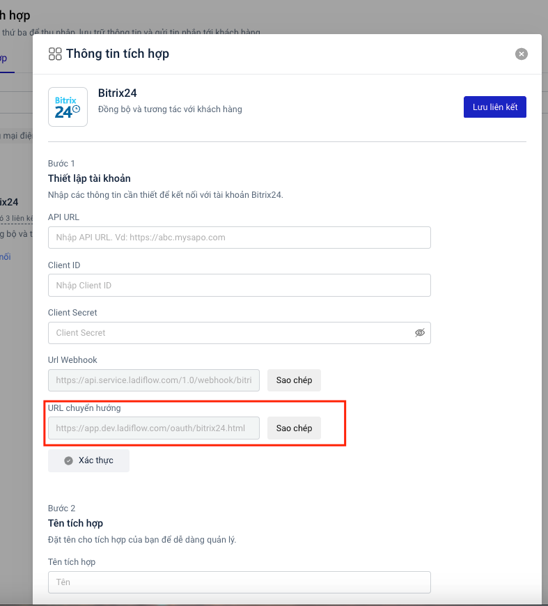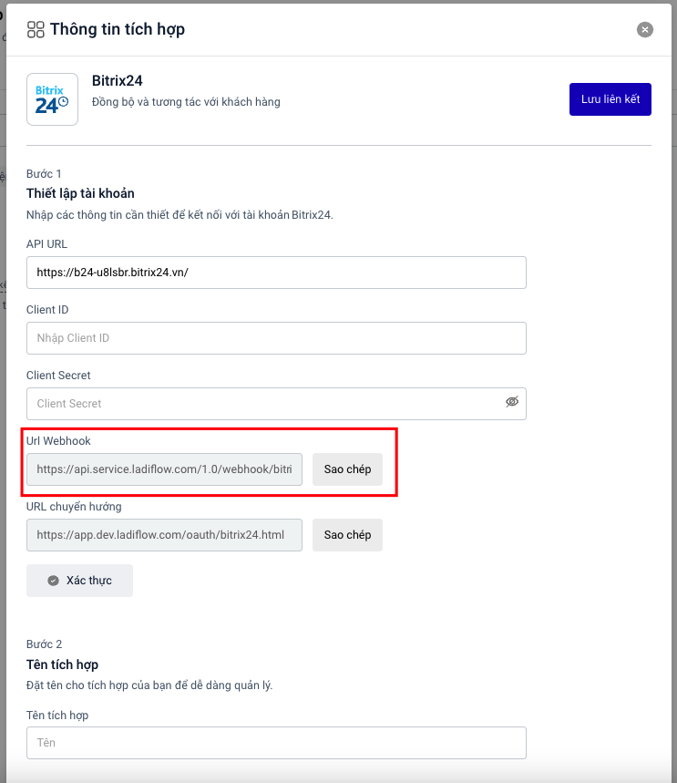 Nhập các thông tin vào form thêm mới liên kết trên Automation với dữ liệu bạn vừa tạo