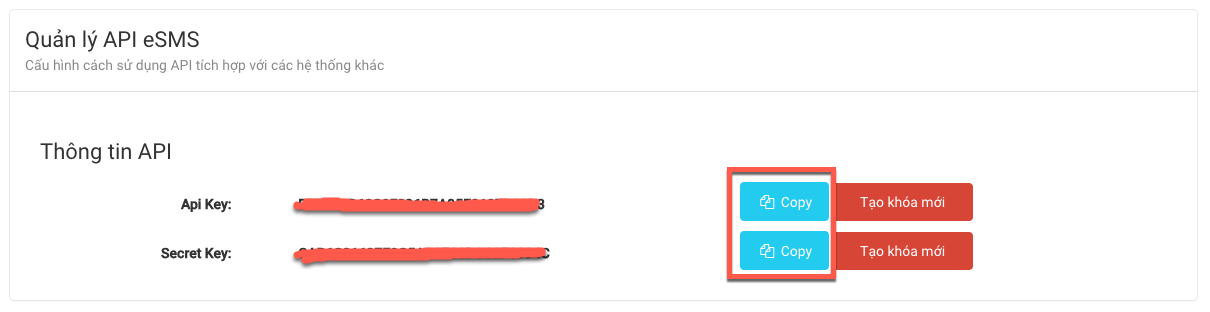 Sau khi có tài khoản và đã đăng ký dịch vụ với eSMS, bạn thực hiện các thao tác sau để tích hợp: