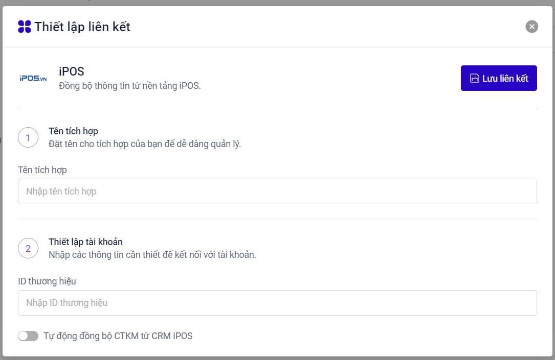 Bật Tự động đồng bộ CTKM từ CRM IPOS thì các Chương trình khuyến mại phát hành trên kênh đối tác LadiPage sẽ tự động được tạo trên tài khoản LadiFlow của bạn.