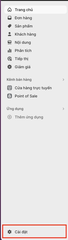 - Truy cập vào Shopify, chọn Cài đặt, sau đó chọn Thông báo.