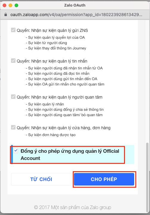 Tài khoản Zalo tích hợp phải là tài khoản Zalo OA Doanh nghiệp trả phí.