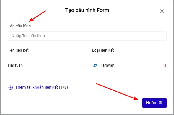 Nhập Tên cấu hình để lưu lại cấu hình form vừa tạo và bấm nút Hoàn tất.