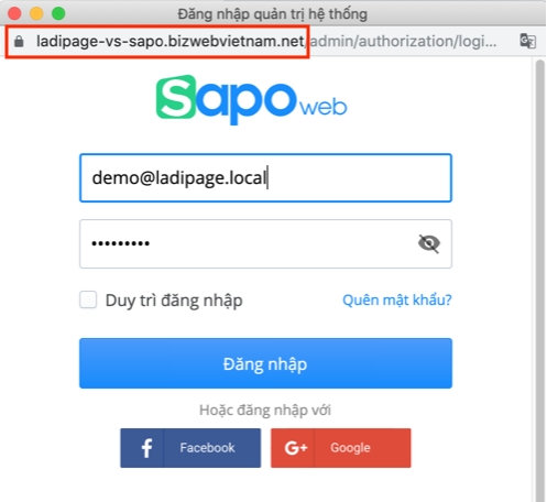API URL: Lấy từ tài khoản admin Sapo của bạn.
