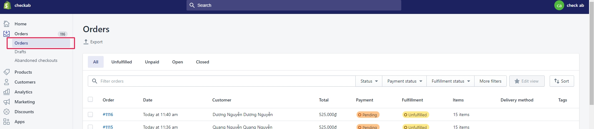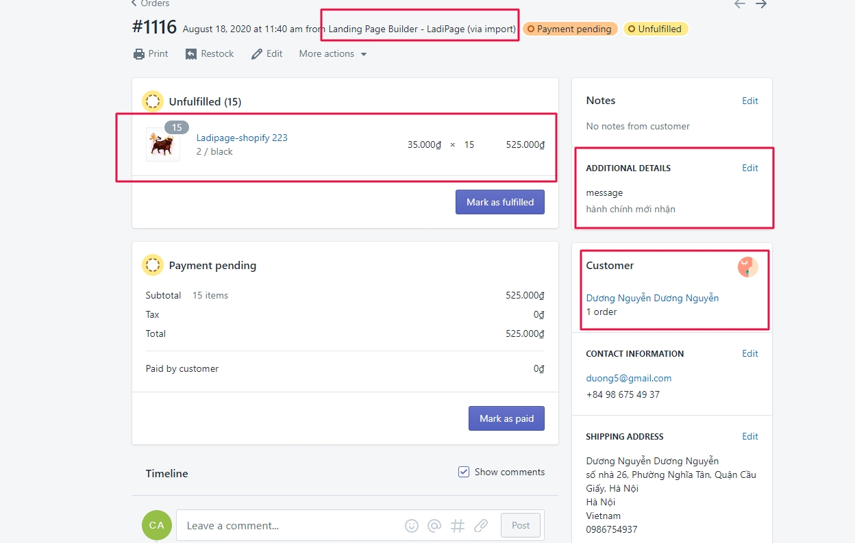 Vậy là bạn đã hoàn thành việc đồng bộ đơn hàng từ Landing Page sang mục Orders trên Shopify.