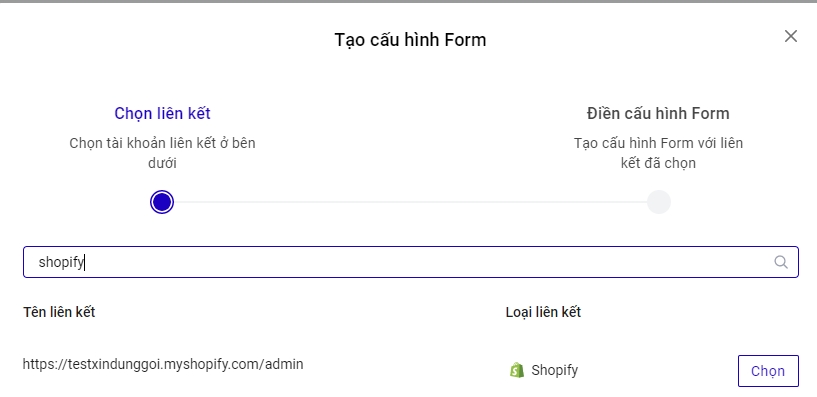 Bấm nút Chọn để sử dụng tài khoản liên kết Shopify bạn muốn dùng.