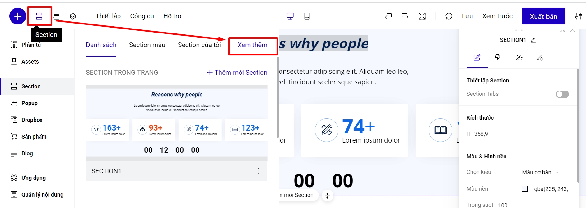 Section Global sẽ được lưu ở mục Section Global trong mục Section --> Xem thêm--> Section Global.