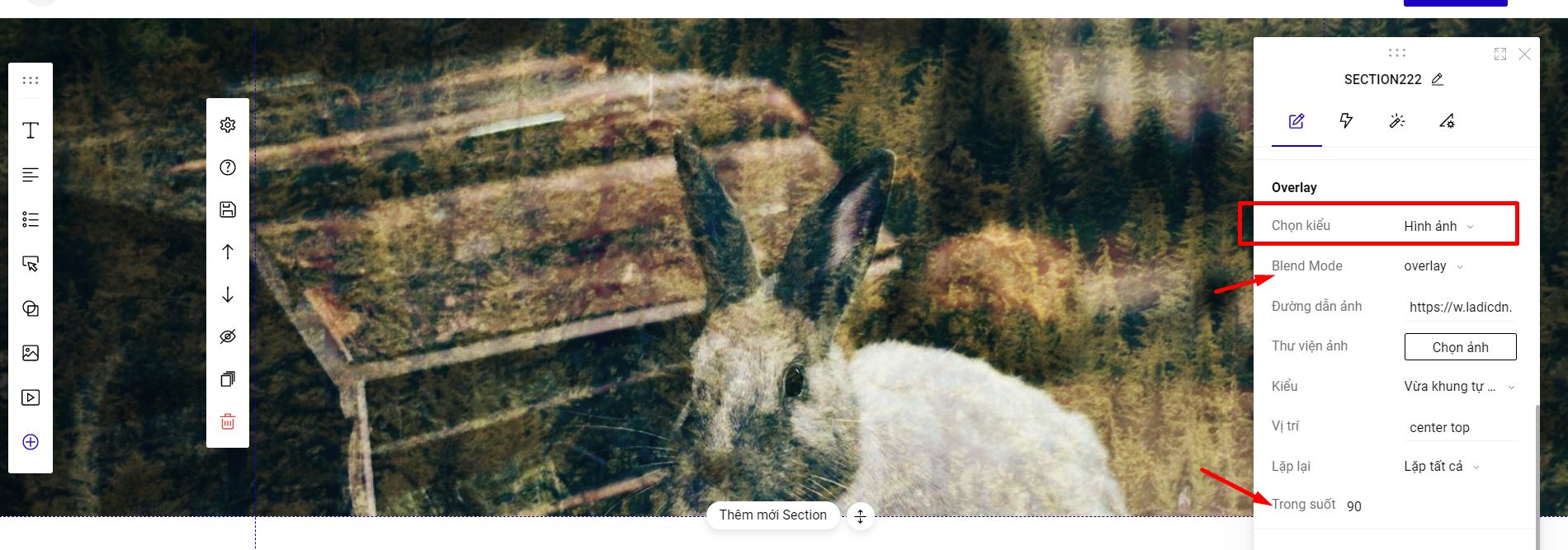 Nếu bạn chọn Overlay kiểu hình ảnh, bạn có thể sử dụng thêm Blend Mode và Trong suốt để thiết kế thêm sinh động: